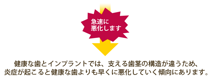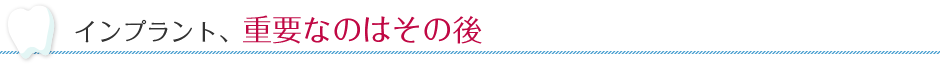 定期的なメンテナンスをしっかりと行わないと、せっかく高いお金を払って行ったインプラントがムダになってしまいます。 メンテナンスには必ず行きましょう! 歯医者は痛くなってから行く場所ではありません。 インプラント治療していない方でも定期的なメンテナンスが必要です。